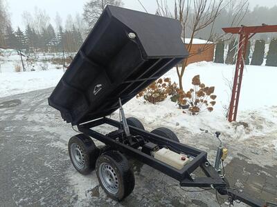 8Przyczepa do quada wykonana solidnie z hydraulicznym wywrotem.Bez problemu podnosi 1500kg.Zawieszenie typu tandem na ...